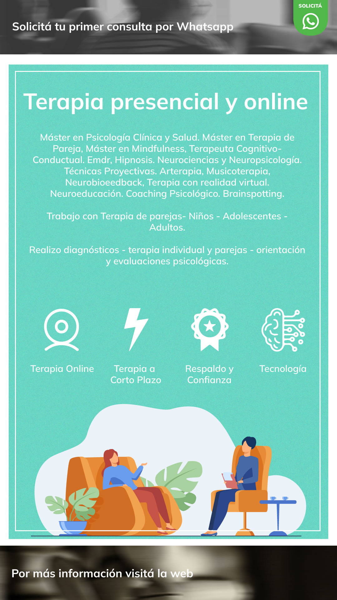 Recomiendo totalmente!!! Realice terapia online y me sorprendio los resueltados obtenidos en pocas sesiones ya note resultados . Aplicamos tècnicas online como emdr . Muy conforme.